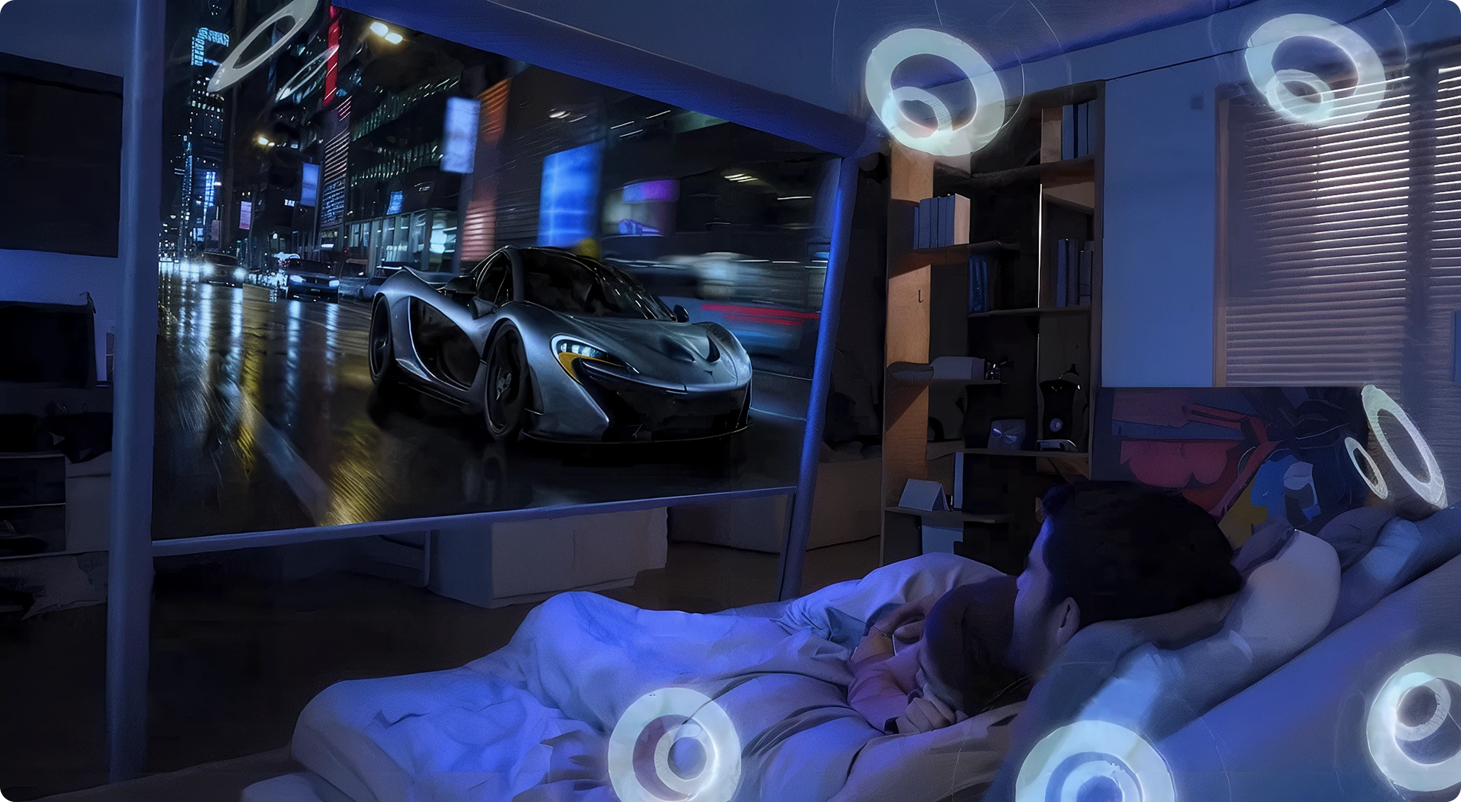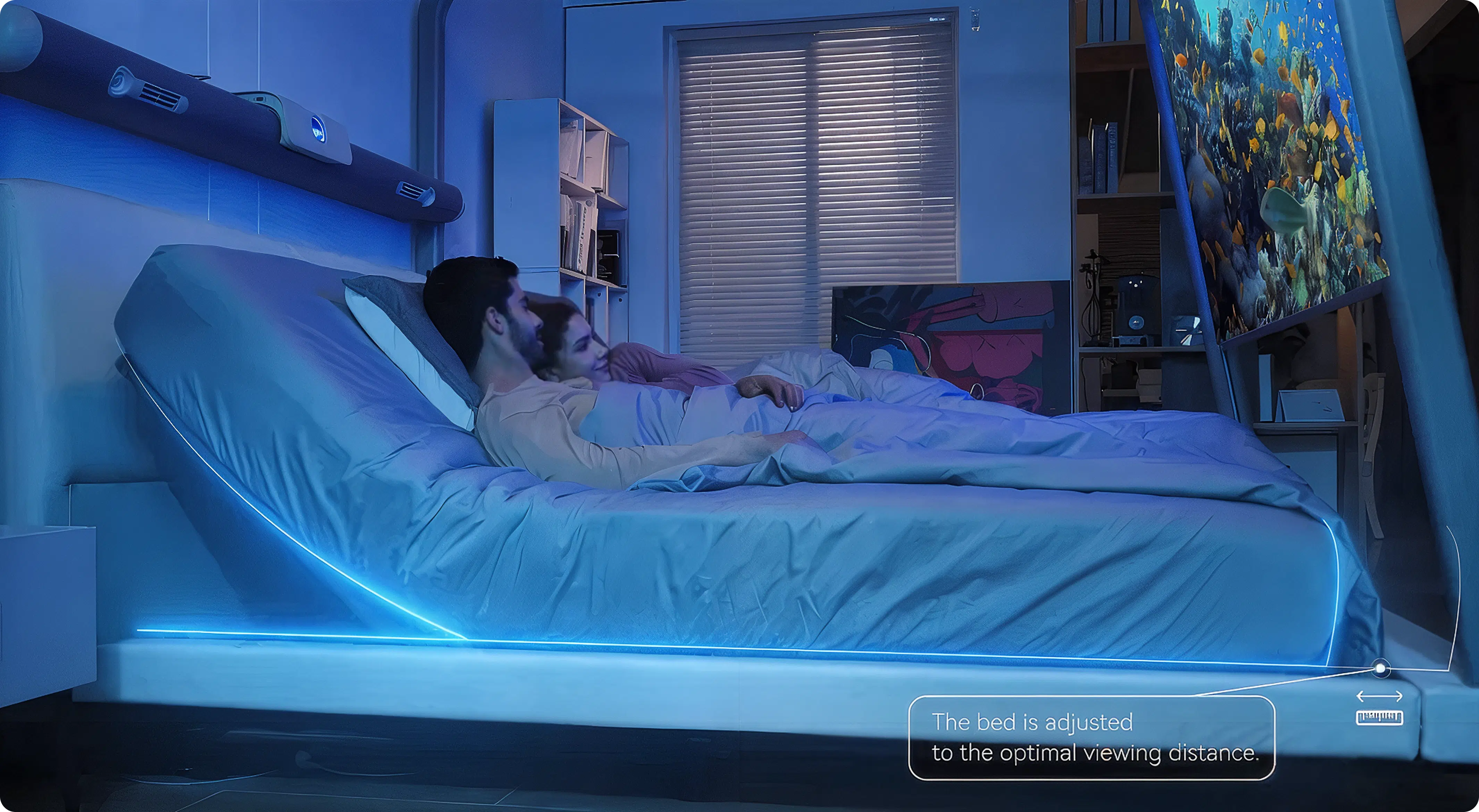 Yes, the screen distance is intentionally designed for immersive rest. When lying down, your field of view and depth perception change. A closer screen reduces peripheral distraction, helping the brain enter a more relaxed state. If preferred, brightness and content intensity can be adjusted for comfort.